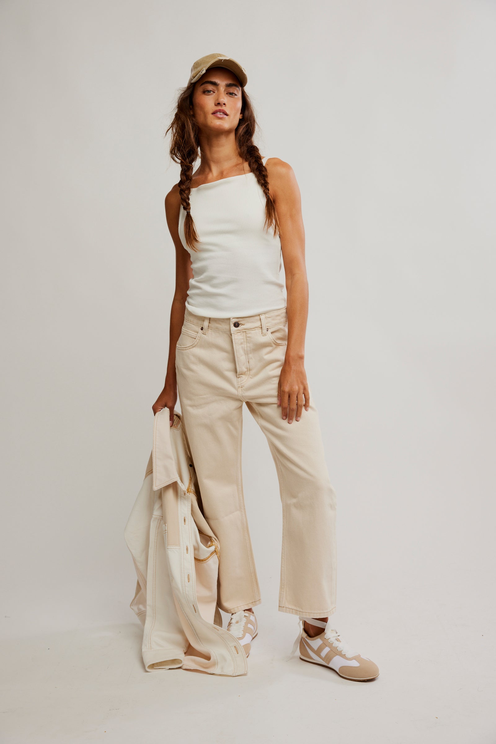 Free People model is wearing a 25 for loose fit, Kristina (in-store model) is wearing a 24 for a more fitted silhouette
