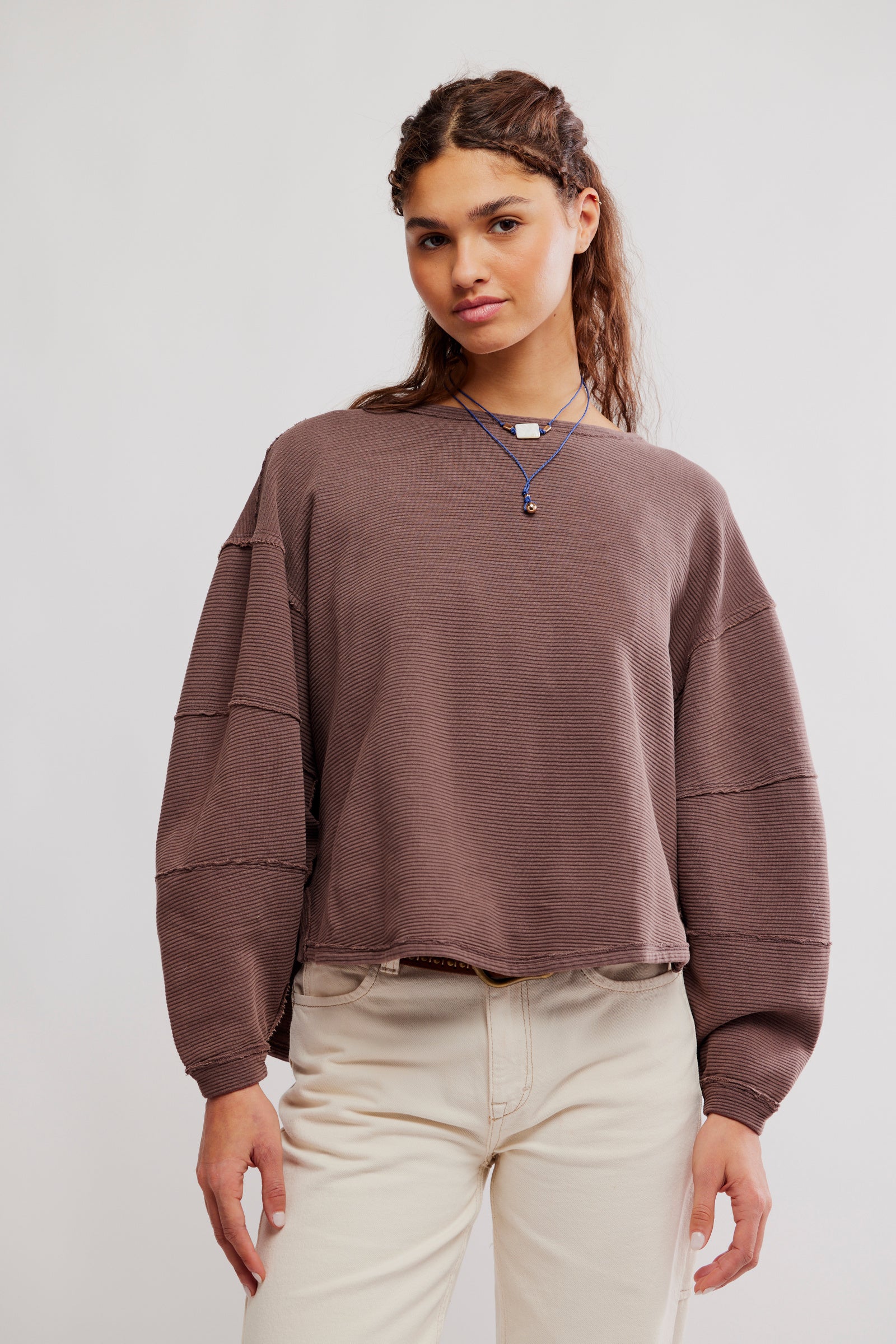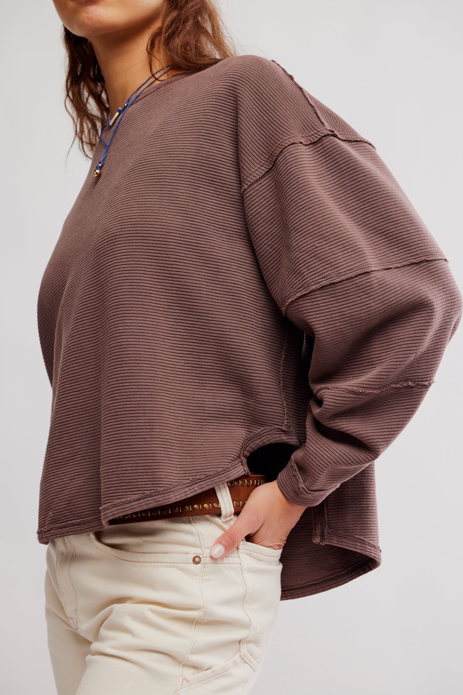 An elevated take on the classic tee, this long-sleeve from our We The Free collection features a ribbed fabrication and slouchy silhouette with defined seams and a scoop-neckline.